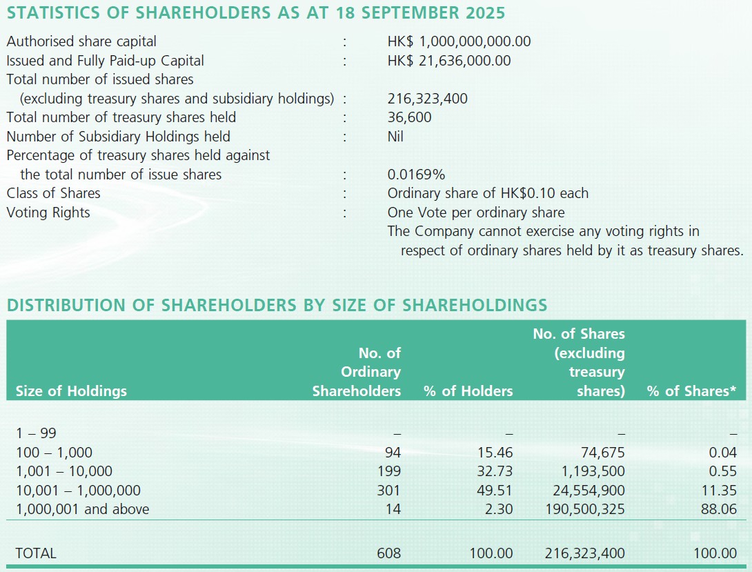 * Percentage is based on 216,323,400 Shares (excluding shares held as treasury shares and subsidiary holdings) as at 18 September 2025.